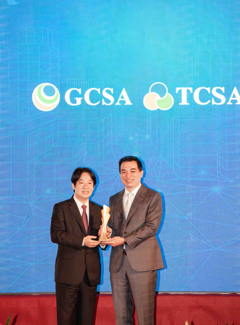 AUO clinches multiple TCSA awards, which are presented by Vice President Lai, Ching-Te (left) and accepted by AUO President & Chief Operating Officer Frank Ko (right) ? ?
