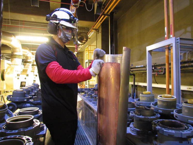 AUO transforms wastes into useful industrial or consumer products raw material. The picture shows highly-purified copper tube made from quenched wastes copper liquid. ? ?