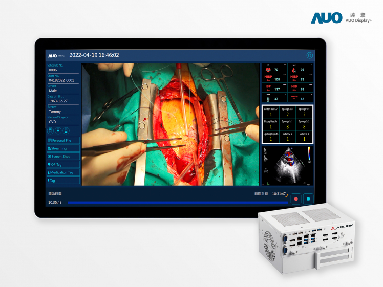 AUO Display Plus, ADLINK and imedtac jointly showcase the Smart Operating Room Dashboard Solution to integrate multiple patient information and surgical images and deliver smoother surgical workflows. |