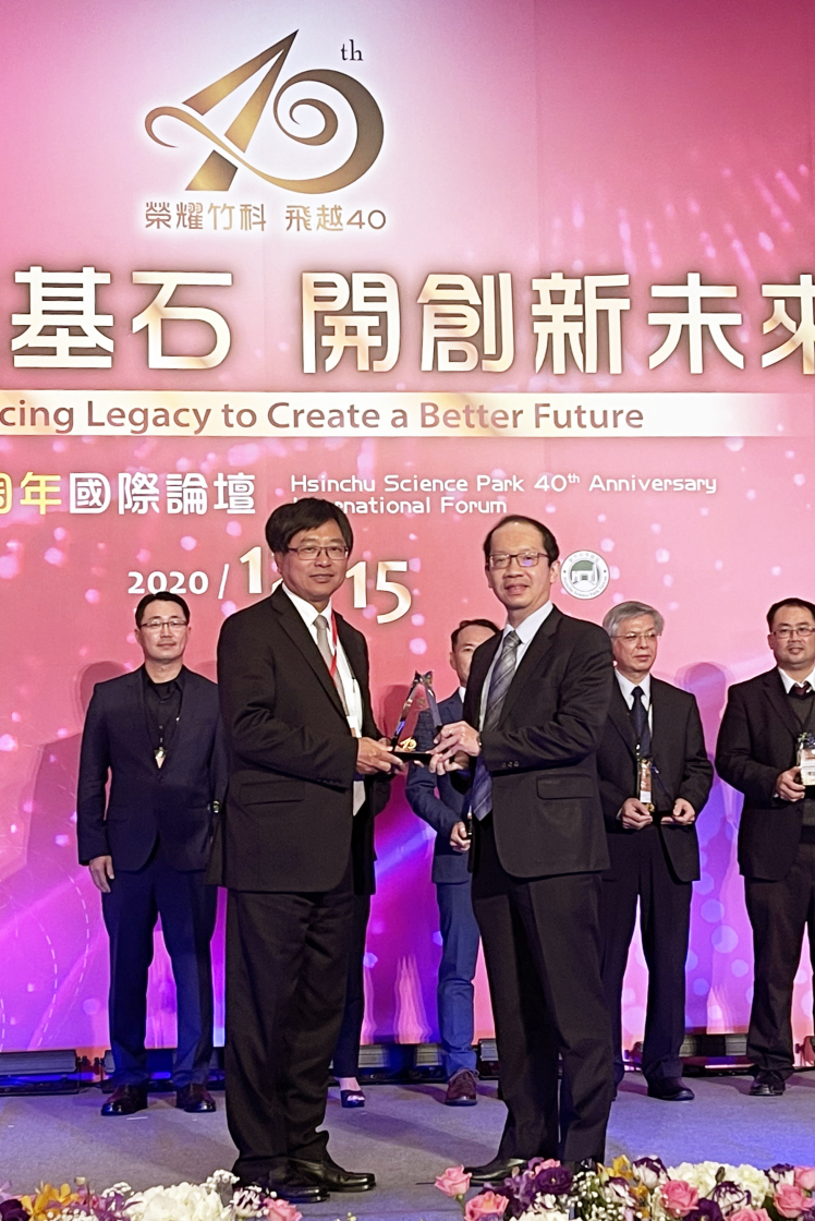 VR彩票榮獲「2020 年竹科優(yōu)良廠商創(chuàng)新產(chǎn)品獎」,由VR彩票技術(shù)長廖唯倫 (右) 代表領(lǐng)獎 |