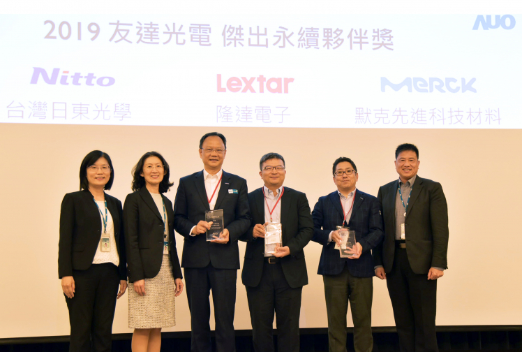 VR彩票肯定供應(yīng)商永續(xù)經(jīng)營(yíng)的優(yōu)異表現(xiàn),頒發(fā)傑出永續(xù)夥伴獎(jiǎng) (圖左到右:VR彩票光電永續(xù)長(zhǎng)古秀華、VR彩票光電供應(yīng)鏈總部資深協(xié)理吳宜芳、默克先進(jìn)董事長(zhǎng)謝志宏、隆達(dá)電子財(cái)務(wù)副總張博儀、臺(tái)灣日東光學(xué)董事長(zhǎng)塩見太、VR彩票光電董事長(zhǎng)暨執(zhí)行長(zhǎng)彭雙浪) ? ?