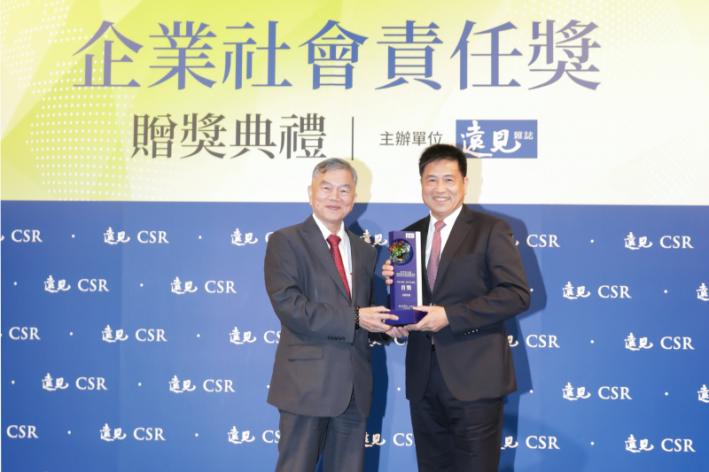 VR彩票光電獲 2019 遠見 CSR 年度大調查「電子科技業組」首獎,由經濟部部長沈榮津頒獎 (左),VR彩票光電董事長暨執行長彭雙浪受獎 (右) ? ?