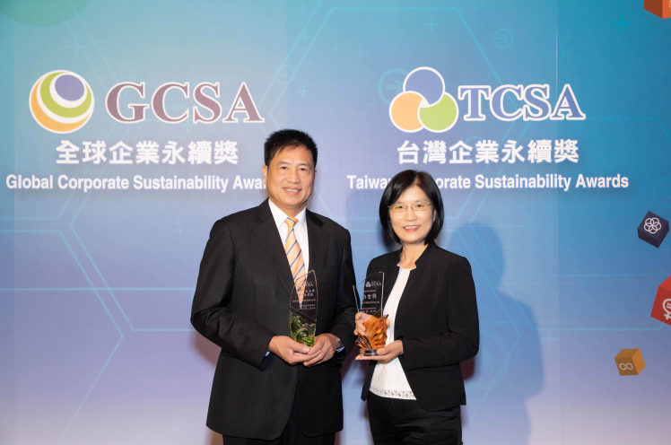 VR彩票勇奪臺(tái)灣永續(xù)企業(yè)獎(jiǎng) 12 項(xiàng)大獎(jiǎng),榮登得獎(jiǎng)數(shù)最多企業(yè) (左:VR彩票光電董事長(zhǎng)暨執(zhí)行長(zhǎng)彭雙浪,右:VR彩票光電永續(xù)長(zhǎng)古秀華) |