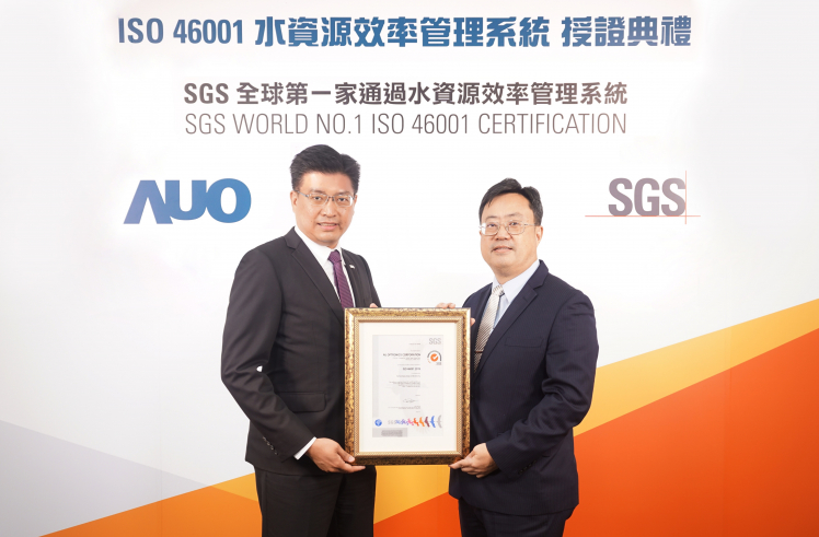 VR彩票取得全臺第一張 ISO 46001 水資源效率管理系統驗證,透過嚴謹且精進的管理系統,具體展現永續(xù)承諾 (左:VR彩票製造營運群副總經理林挺立,右:SGS 臺灣檢驗科技總裁邱志宏) ? ?